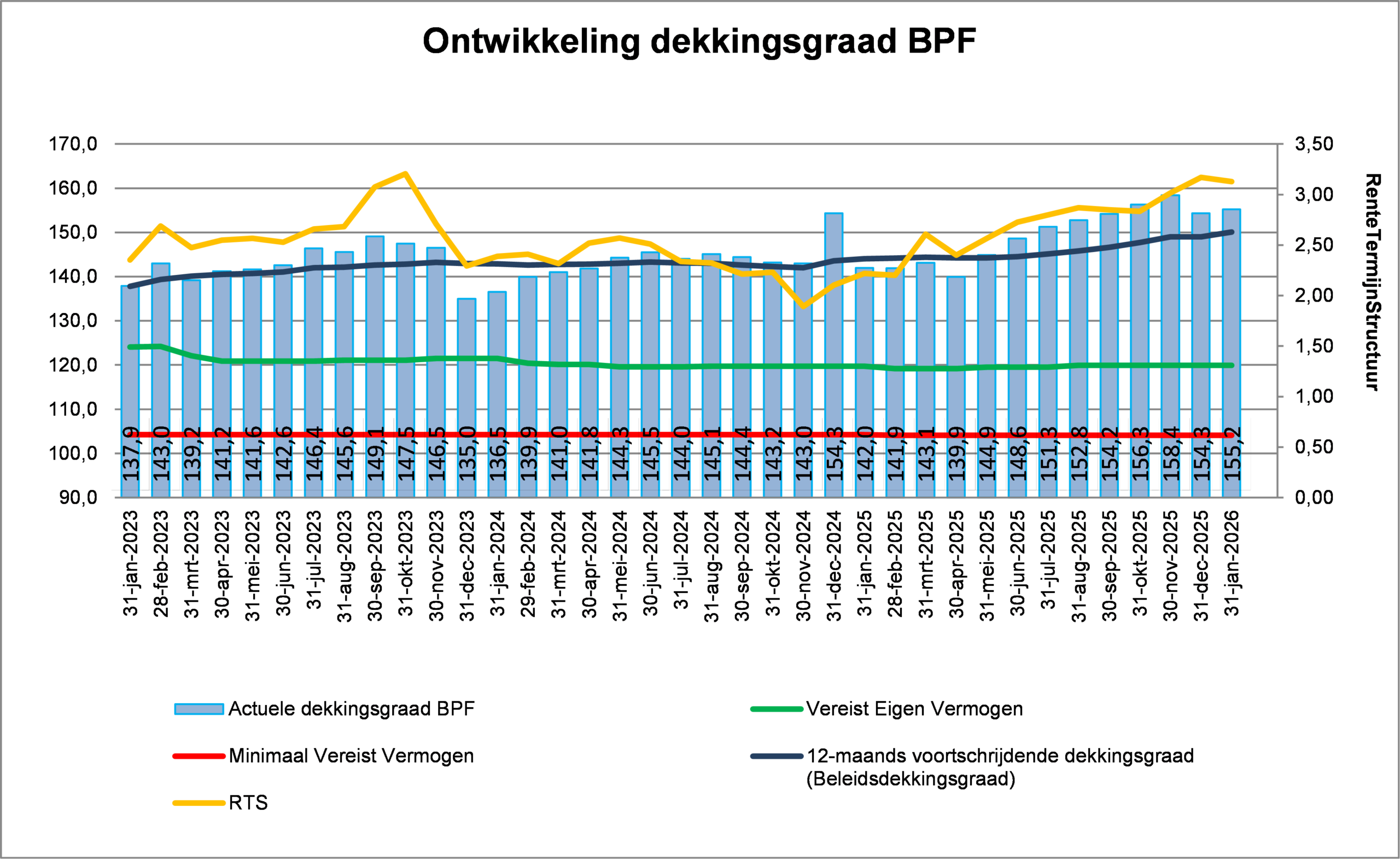 De actuele dekkingsgraad is gestegen van 154,3% eind december 2025 naar 155,2% eind januari 2026.